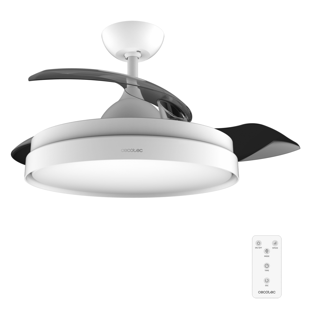 Energysilence Aero 4200 Invisible Black est un ventilateur de plafond au design élégant, idéal pour rafraîchir et éclairer avec discrétion. Ses 3 pales rétractables disparaissent quand la lumière seule est allumée, offrant un look minimaliste en noir. Son moteur DC de 30 W assure une ventilation silencieuse et efficace avec 6 vitesses pour s’adapter à chaque moment. Il intègre une lampe LED pour un éclairage pratique, une minuterie réglable jusqu’à 8 heures et la fonction été/hiver pour inverser le flux d’air selon la saison. La télécommande fournie permet un contrôle simple et confortable à distance. Parfait pour le salon, la chambre ou le bureau, il favorise une circulation d’air homogène.