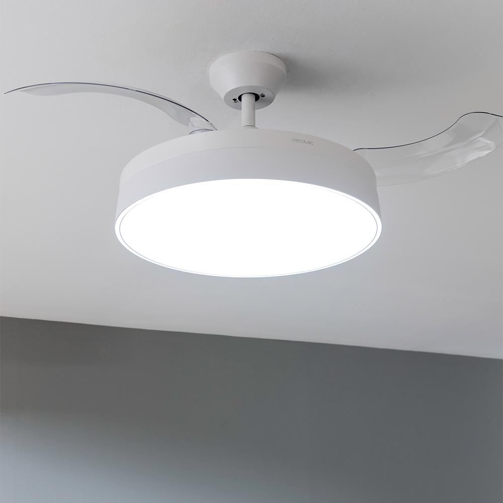 Le ventilateur de plafond EnergySilence Aero 4280 Invisible White conjugue design contemporain et performance silencieuse. Doté de pales rétractables qui disparaissent élégamment lorsqu’il est éteint, il arbore un diamètre de 106 cm (42″), idéal pour couvrir une pièce de taille moyenne. Son moteur en cuivre de 40W assure un débit d’air efficace et durable. Il propose 6 vitesses réglables, une lampe LED intégrée offrant trois températures de lumière (chaude, neutre, froide) et une fonction été/hiver pour inverser la rotation et optimiser la circulation d’air en toute saison. Une minuterie permet de programmer un arrêt automatique après 1, 2, 4 ou 8 heures, et la télécommande incluse rend son usage simple et pratique.