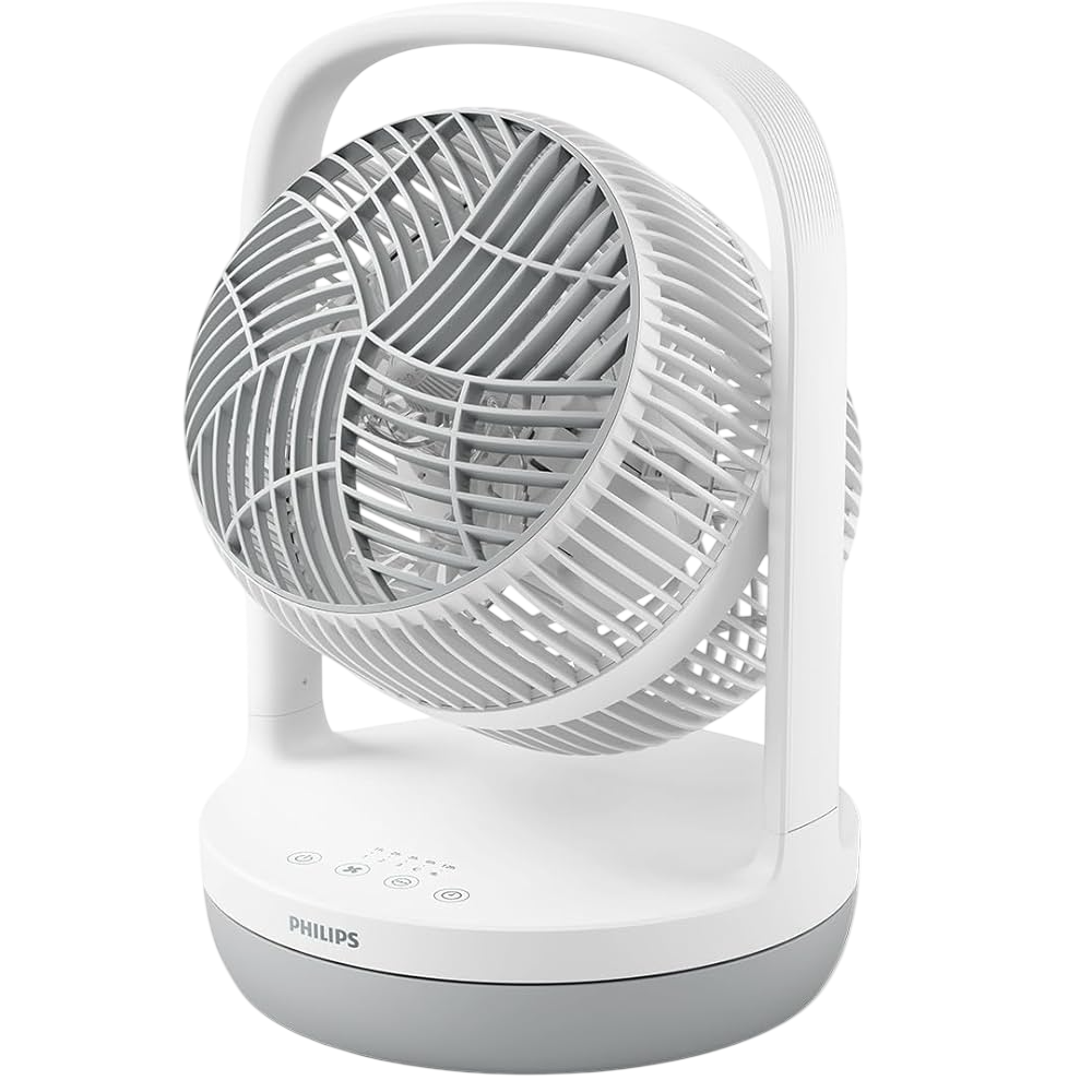 Le ventilateur de table PHILIPS Série 2000 (CX2050/00) offre un rafraîchissement puissant et silencieux grâce à sa technologie SilentWings (seulement 23 dB (A)), idéale pour toute la maison ou le bureau. Avec 3 vitesses, des modes comme la brise naturelle et le mode veille silencieuse, il s’adapte à vos besoins en confort d’air. Sa tête orientable à 180° permet de diriger l’air précisément là où vous en avez besoin, et son design compact et moderne s’intègre facilement à votre intérieur. Facile à transporter et simple à nettoyer, il combine performance, esthétique et convivialité.
