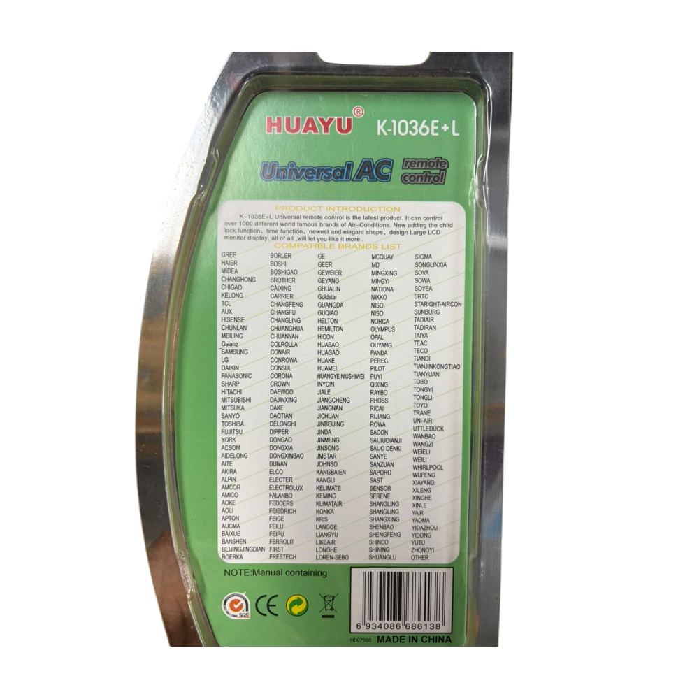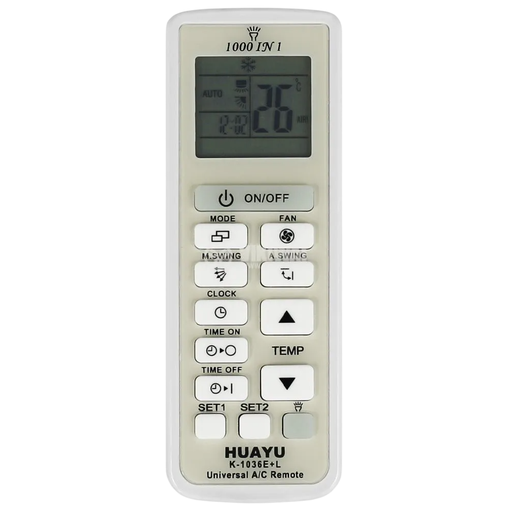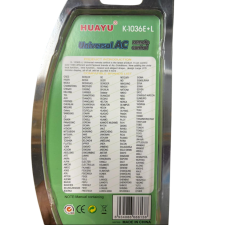 La télécommande universelle HUAYU K-1036E+L est conçue pour contrôler facilement la majorité des climatiseurs du marché. Compatible avec plus de 1000 marques et modèles, elle offre une solution pratique pour remplacer une télécommande d’origine. Dotée d’un écran LCD clair, elle permet un réglage simple des fonctions essentielles comme la température, la ventilation ou le mode de fonctionnement. Grâce à sa fonction de recherche automatique de codes, la configuration est rapide et intuitive. Sa portée étendue permet une utilisation à distance confortable, tandis que son design léger et ergonomique assure une prise en main agréable au quotidien.
