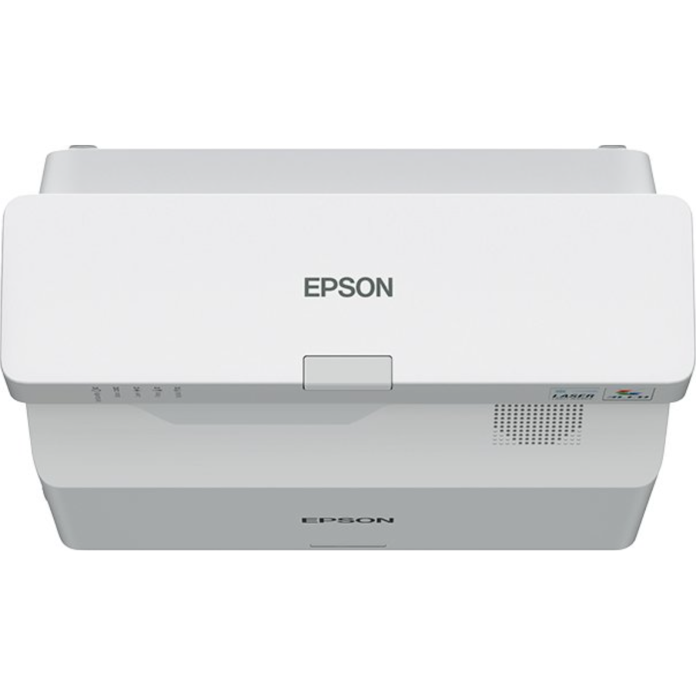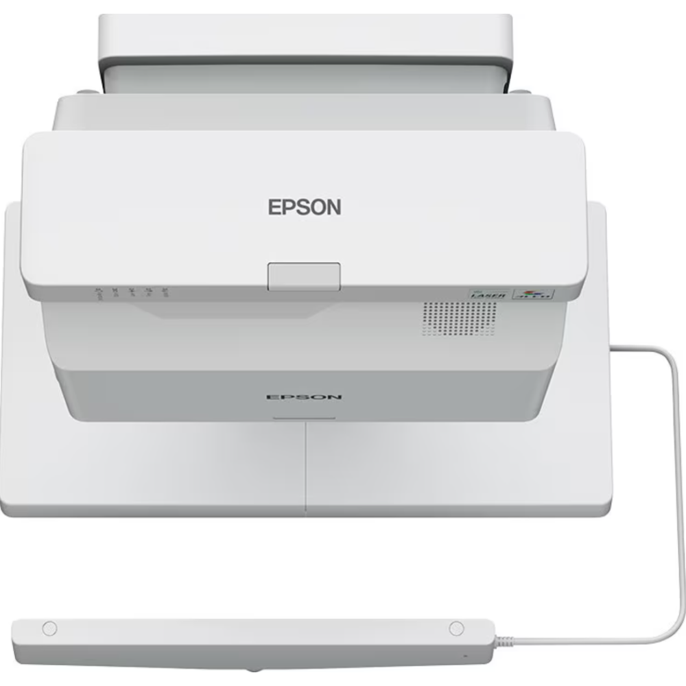 Vidéoprojecteur Epson EB-760WI, version interactive du modèle EB-760W, permet d'utiliser deux stylets simultanément sur la surface d'affichage - Bénéficie de plusieurs annotations sur l'écran et de divers outils intégrés et pratiques pour favoriser sa productivité - Contient un objectif ultracourte focale qui permet un positionnement sûr et discret au-dessus de l'écran - Dispose d'une source lumineuse laser de 4100 lumens combinée à la technologie 3LCD, ce qui permet de projeter une grande image lumineuse et éclatante pouvant atteindre 100pouces, clairement visible sous tous les angles et de loin - Projecteur 3LCD WXGA (1280x800)- IEEE 802.11a/b/g/n/ac sans fil / LAN / Miracast - blanc.