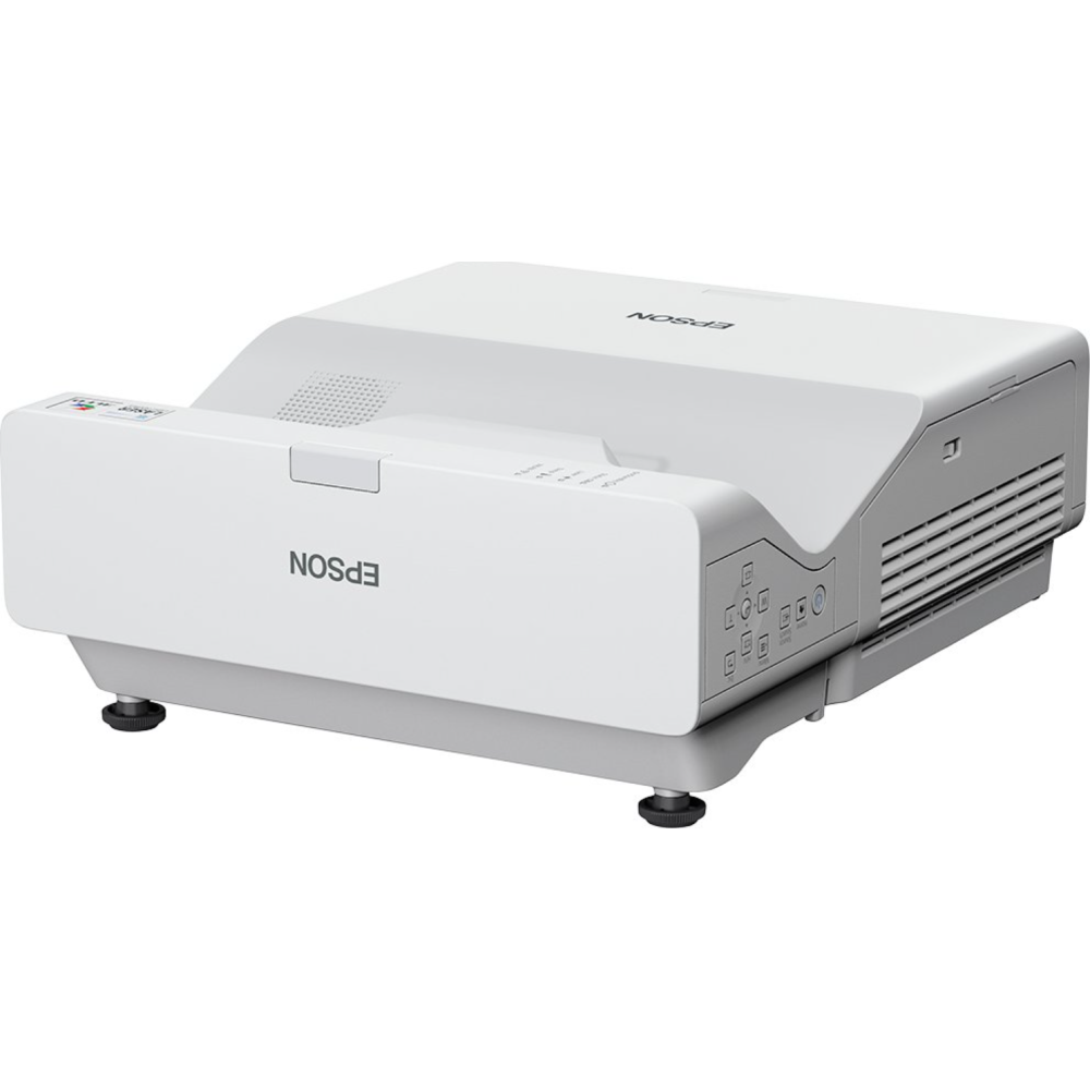 Vidéoprojecteur 3LCD avec résolution de 1920x1080 (full HD) - Intensité lumineuse de 4100 lumens ANSI avec technologie3LCD pour des couleurs plus lumineuses à seulement 205W - Mise en marche automatique, utilisation avec ou sans fil, sortie USB 2A pour smart sticks - Permet de créer et d'enregistrer une leçon ou une présentation en direct - Diagonale d'écran 49-150 pouces sans restriction - Interfaces: prise jack 305mm, entrée microphone 3.5mm, HDMI, RJ-45 - Objectif à ultra courte focale - Durée de vie de la source lumineuse 30000h - Niveau sonore 37dB - IEEE 802.11a/b/g/n/ac sans fil / LAN / Miracast - blanc.
