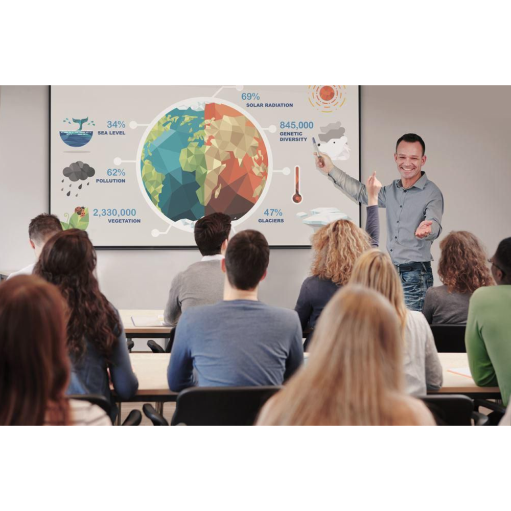 Vidéoprojecteur 3LCD avec résolution de 1920x1080 (full HD) - Intensité lumineuse de 4100 lumens ANSI avec technologie3LCD pour des couleurs plus lumineuses à seulement 205W - Mise en marche automatique, utilisation avec ou sans fil, sortie USB 2A pour smart sticks - Permet de créer et d'enregistrer une leçon ou une présentation en direct - Diagonale d'écran 49-150 pouces sans restriction - Interfaces: prise jack 305mm, entrée microphone 3.5mm, HDMI, RJ-45 - Objectif à ultra courte focale - Durée de vie de la source lumineuse 30000h - Niveau sonore 37dB - IEEE 802.11a/b/g/n/ac sans fil / LAN / Miracast - blanc.