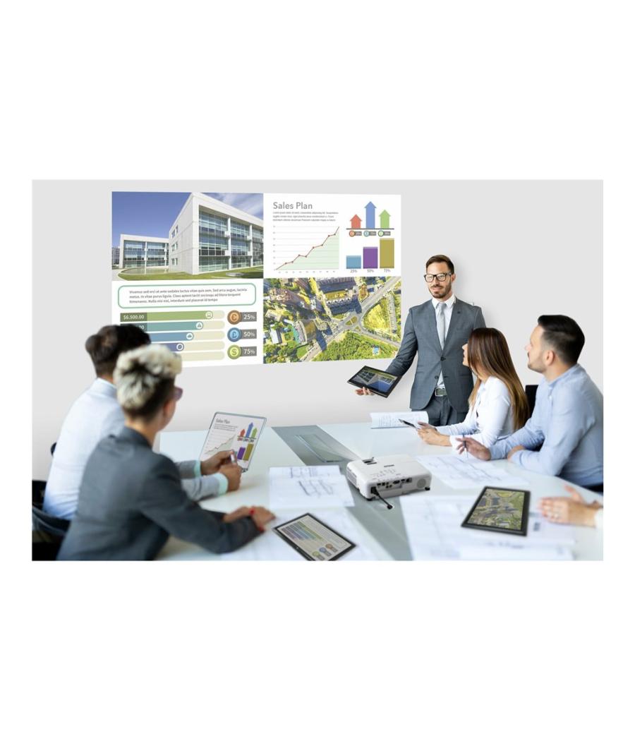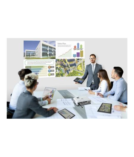 Grâce à ce projecteur WXGA, le contenu est net, lumineux et éclatant, favorisant les interactions avec l'auditoire. Offrant une excellente visibilité, ce projecteur permet d'avoir une taille d'image évolutive jusqu'à 280pouces et diffuse un contenu lumineux, même dans des environnements éclairés. Cela grâce à la sortie de 4200lumens et un taux de contraste de 16000:1.