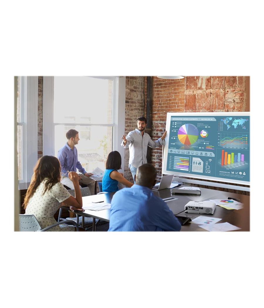 Captez l'attention de votre auditoire et privilégiez un environnement collaboratif avec des solutions simples de connectivité. Avec l'application iProjection, il est facile d'afficher du contenu à partir d'ordinateurs et d'appareils mobiles. Grâce à la fonction de partage d'écran, vous pouvez afficher simultanément le contenu de plusieurs appareils, tandis que la fonction modérateur vous permet de passer en revue le contenu avant sa diffusion.