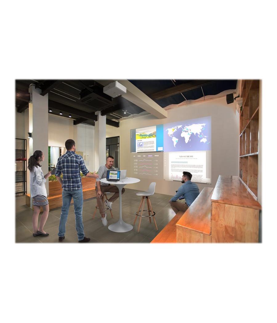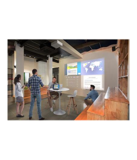 Vidéoprojecteur 3LCD avec résolution de 1920x1080 (full HD) - Intensité lumineuse de 4100 lumens ANSI avec technologie3LCD pour des couleurs plus lumineuses à seulement 205W - Mise en marche automatique, utilisation avec ou sans fil, sortie USB 2A pour smart sticks - Permet de créer et d'enregistrer une leçon ou une présentation en direct - Diagonale d'écran 49-150 pouces sans restriction - Interfaces: prise jack 305mm, entrée microphone 3.5mm, HDMI, RJ-45 - Objectif à ultra courte focale - Durée de vie de la source lumineuse 30000h - Niveau sonore 37dB - IEEE 802.11a/b/g/n/ac sans fil / LAN / Miracast - blanc.