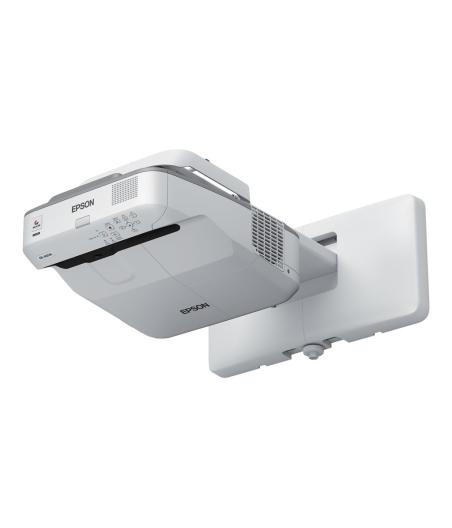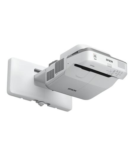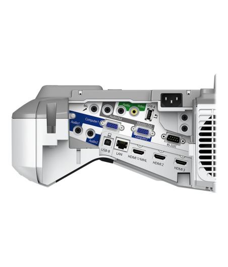 Vidéoprojecteur 3LCD avec résolution de 1920x1080 (full HD) - Intensité lumineuse de 4100 lumens ANSI avec technologie3LCD pour des couleurs plus lumineuses à seulement 205W - Mise en marche automatique, utilisation avec ou sans fil, sortie USB 2A pour smart sticks - Permet de créer et d'enregistrer une leçon ou une présentation en direct - Diagonale d'écran 49-150 pouces sans restriction - Interfaces: prise jack 305mm, entrée microphone 3.5mm, HDMI, RJ-45 - Objectif à ultra courte focale - Durée de vie de la source lumineuse 30000h - Niveau sonore 37dB - IEEE 802.11a/b/g/n/ac sans fil / LAN / Miracast - blanc.