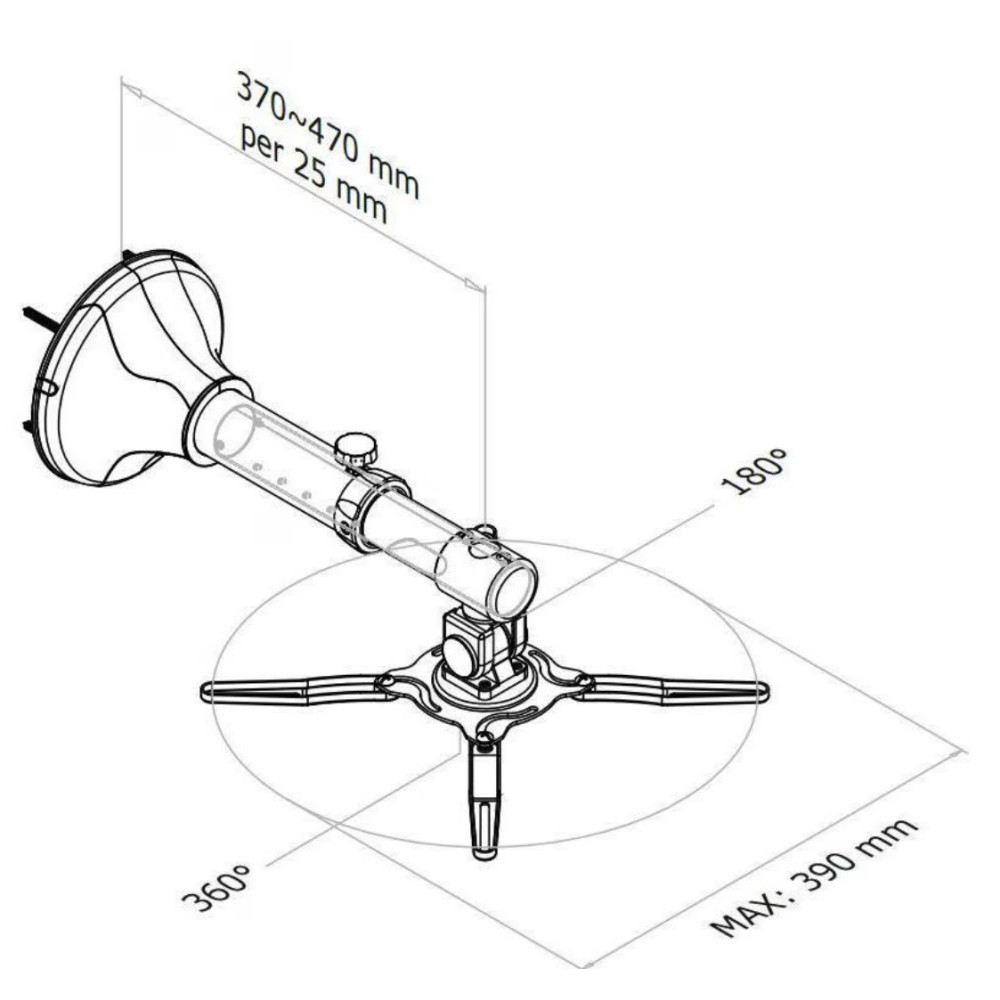 Support de plafond pour vidéoprojecteur présentant le meilleur rapport qualité / prix ! - Prévu pour recevoir des projecteurs d'un poids de 13,5 kg max - Hauteur entre projecteur fixé et plafond : 15 cm - Espacement des entraxes de fixation : de 54 à 320 mm - Inclinaison : +/-15° - Rotation : 360° - Couleur : noire.