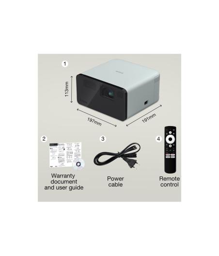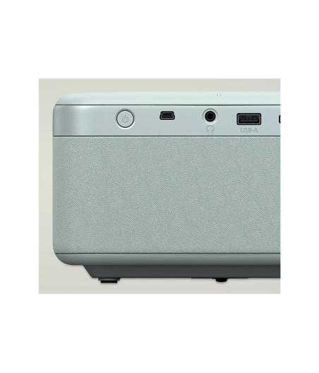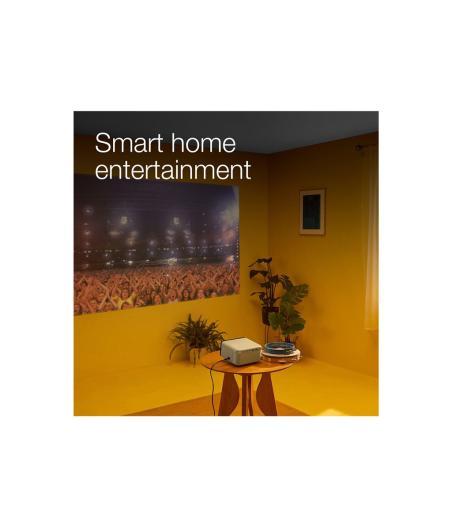 | Mini projecteur laser élégant Ce projecteur compact de couleur vert fumé glacé peut projeter dans n'importe quelle direction: au mur, au plafond ou au sol. Sa simplicité d'utilisation, de configuration et de transport vous permettent de profiter de vos divertissements en déplacement. En grand, c'est mieux Créez une expérience grand écran où vous le souhaitez grâce à une impressionnante taille d'image pouvant atteindre 150pouces (3,81m). Avec les niveaux de luminosité blanche et couleur élevés et équivalents d'Epson, les images sont claires, nettes et votre contenu prend vie. Divertissement à domicile intelligent Tous vos contenus en streaming. Le tout sur une seule interface. Accédez à plus de 400000 films et épisodes de séries télévisées, le tout au même endroit. GoogleTV vous permet d'accéder à vos contenus préférés de l'ensemble de vos applications et abonnements et les organise tout spécialement pour vous. Demandez à GoogleAssistant de trouver des films, de diffuser des applications, de jouer de la musique et de contrôler votre projecteur, le tout avec votre voix. Diffusez facilement des films, des émissions, des photos et bien plus encore depuis votre téléphone ou tablette, directement sur votre projecteur avec GoogleCast. Les haut-parleurs Bluetooth 5W intégrés peuvent être utilisés avec ou sans affichage. Solution durable La source lumineuse laser longue durée vous offre une consommation d'énergie plus faible. Vous pourrez profiter de vos divertissements à domicile pendant environ 10ans. Images nettes et de haute qualité Ce mini projecteur laser, à la fois très performant et bénéficiant d'un prix attractif, restitue des images extrêmement lumineuses et colorées, aux détails précis. Son taux de contraste de 5000000:1 produit également des zones d'ombre clairement définies et des noirs profonds. Grâce à la technologie 3LCD, les projecteurs Epson bénéficient de couleurs jusqu'à trois fois plus lumineuses par rapport aux projecteurs mono-DLP équivalents. Installation simple, plug-and-play Les technologies intégrées telles que la mise au point automatique, la correction du trapèze, l'évitement des obstacles et l'ajustement de l'écran vous permettent de profiter d'un divertissement instantané à la maison ou en déplacement. Allumez simplement le projecteur et laissez-le trouver la taille d'image la mieux adaptée à votre environnement. | |