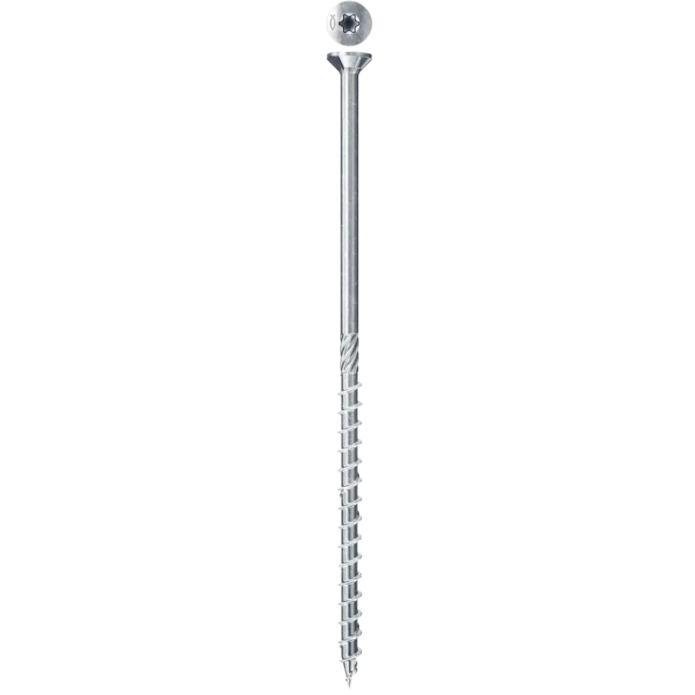 Vis de façade FFSII-RT6 recommandée pour un vissage à proximité des bords avec une finition de surface sans éclats - Embarque une empreinte étoile TX permettant une transmission des forces maximales avec une grande stabilité de l'embout - Présente une forme de filetage spéciale et innovante qui facilite le vissage même sans pré-perçage - Fabriquée en acier inoxydable A2 et idéale pour la fixation des façades en bois dur - Structurée avec une tête fraisée réduite pour un vissage affleurant et discret.