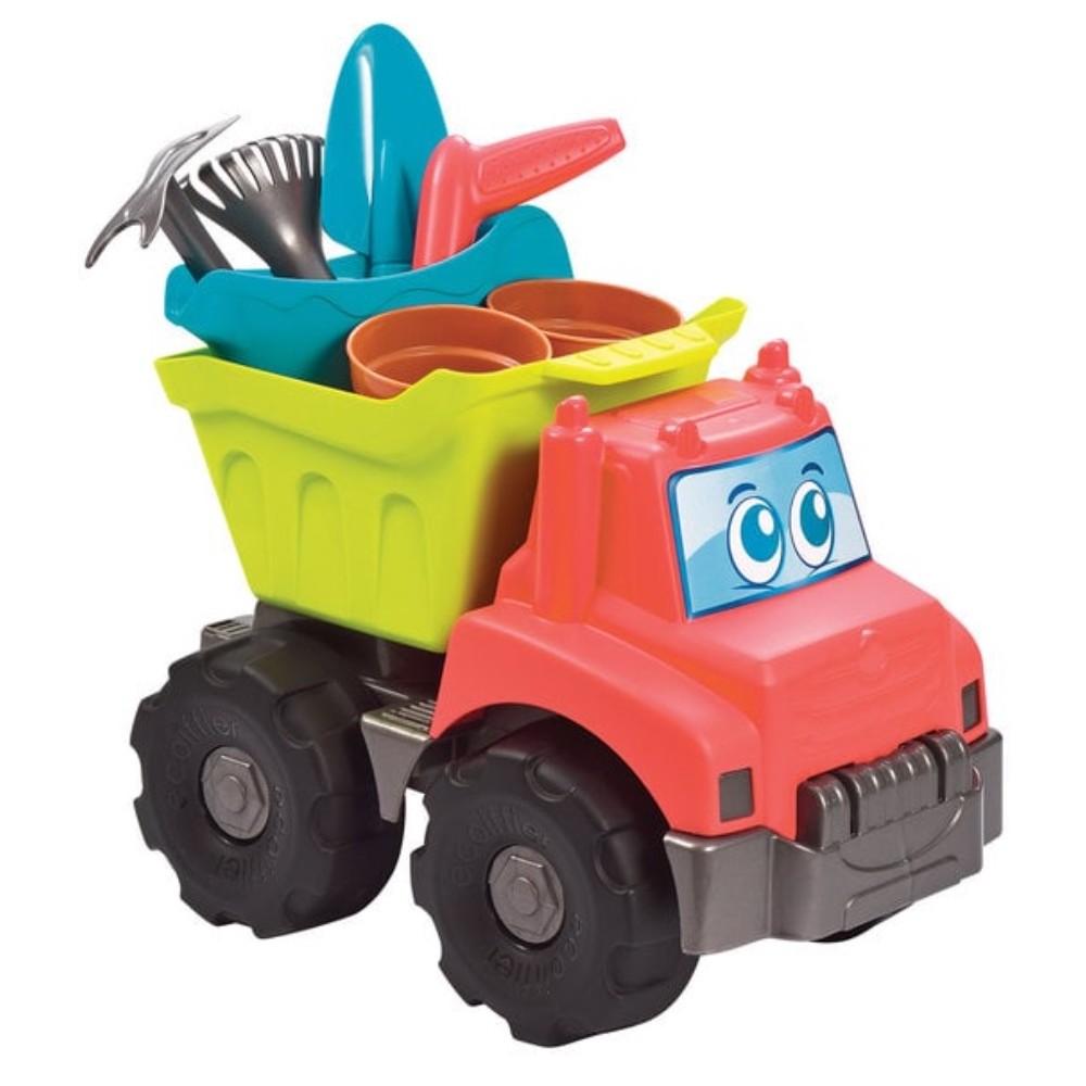 Un camion garni idéal pour jouer à l’extérieur ou à la plage. Ce camion à benne inclinable est garni d’une pelle, d’une pioche, d’un râteau, de 2 pots de fleurs, d’un plantoir et d’un arrosoir. Votre bambin aimera, charger son camion, planter des fleurs, creuser, ...