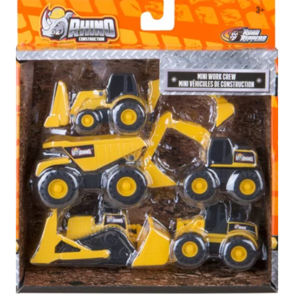 Set contenant 5 engins ou mini véhicules de construction d’environ 8 cm : bulldozer, excavatrice, chargeur, chargeur avec pelle arrière et camion benne - Taille parfaite pour s’amuser - Véhicules roues libres - En plastique - Intérêts pédagogiques pour l’enfant : éveil et motricité.