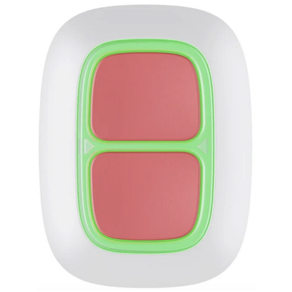 Bouton panique sans fil avec protection contre l'activation accidentelle AJAX 23003.79.WH1 Double button - Connecté au système de sécurité AJAX - Configurable via les applications AJAX sur iOS, Android, macOS et Windows - Notifications push, SMS et appels téléphoniques en cas d'alarme ou d'événement (si activés) - Raccordement : Radio - Environnement : Intérieur - Matériaux : Polycarbonate - Couleur : Blanc - Nombre de boutons : 2 - Gamme : AJAX Baseline - Dimensions : 47 × 35 × 16 mm.