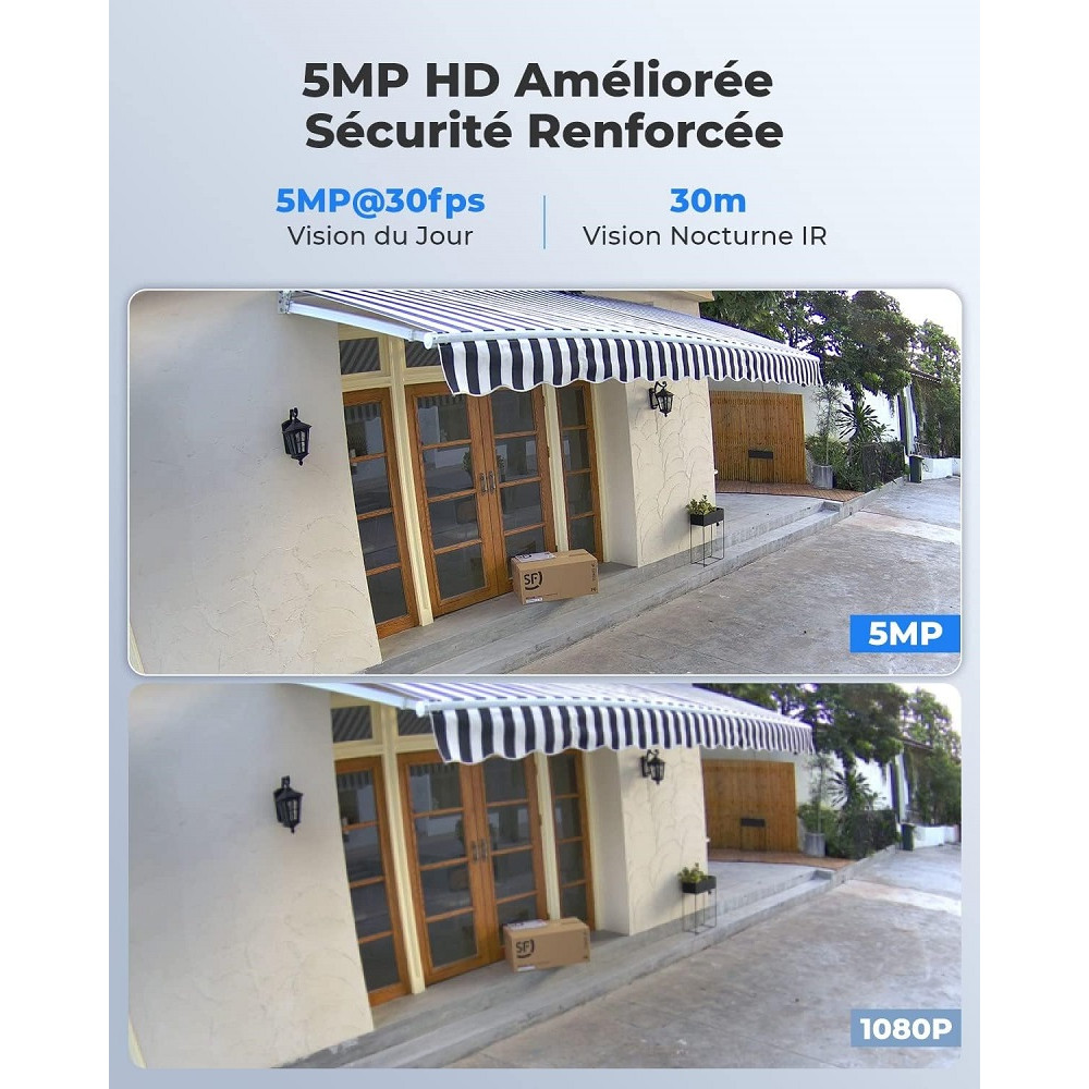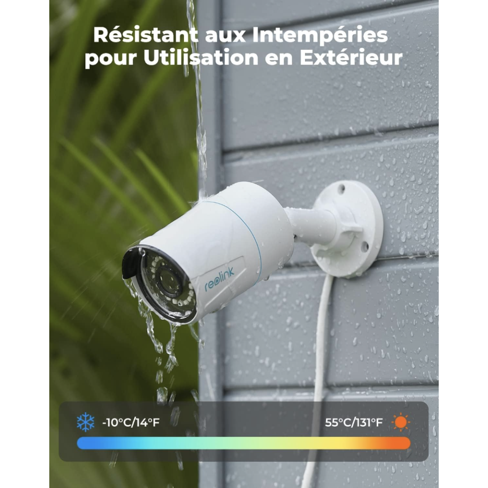 Caméra IP Intelligente REOLINK RLC-510A - Détection avancée de personne/véhicule - Résolution Super HD 5 MP - Vision nocturne claire - Enregistrement audio - Dimensions : Longueur de 105 mm, largeur de 95 mm - Couleur : Blanc - Usage : Extérieur - Connectivité : Filaire - Caractéristiques : Enregistrement sur micro SD jusqu'à 256 Go, Ultra HD 5MP, Détection Personne/Véhicule, IP66 Étanche - Compatibilité : Windows/Mac OS/iOS/Android - Alimentation : DC ou PoE (IEEE 802.3af) - Contrôle : PC : Windows, Mac Os, Smartphone : iOS, Android.