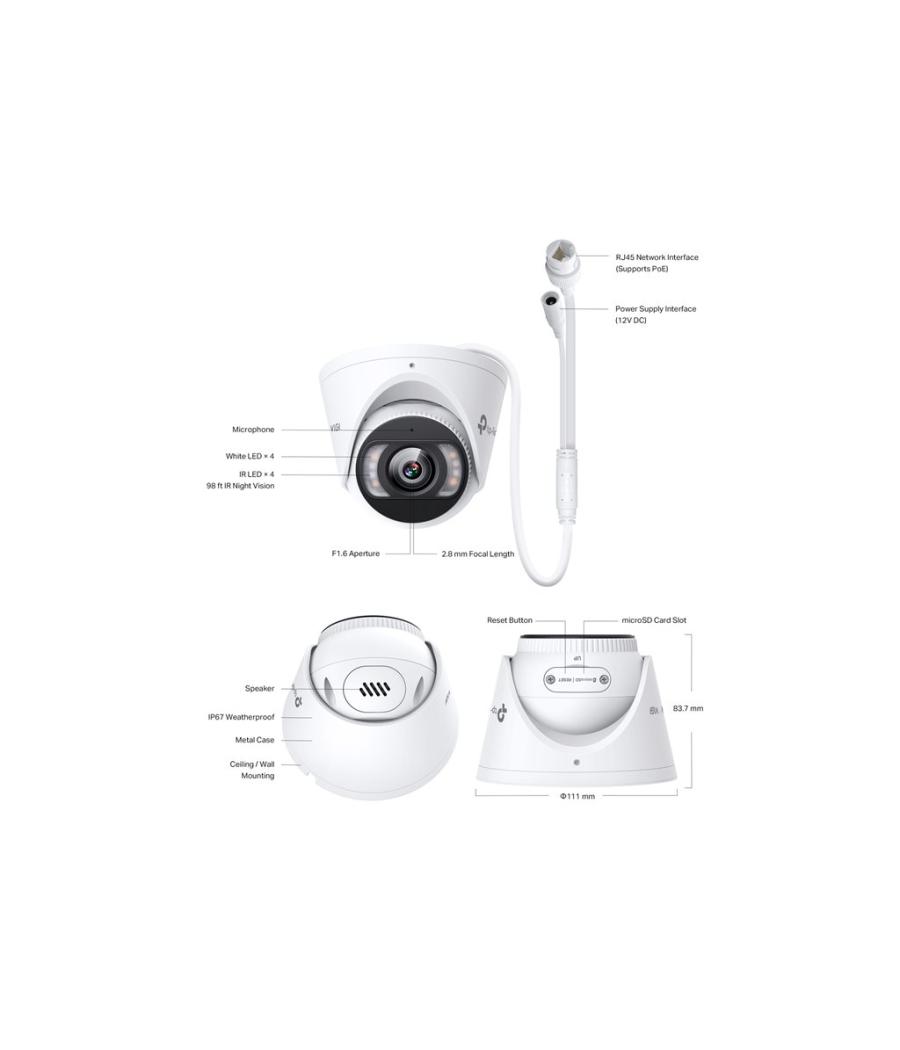 TP-Link VIGI InSight S455 V1 - Cam?ra de surveillance r?seau - panoramique / inclinaison - tourelle - Etanche - couleur (Jour et nuit) - 5 MP - 2880 x 1620 - montage M12 - Focale fixe - audio - LAN 10/100 - H.265+, H.265, H.264+, H.264 - CC 12 V / PoE