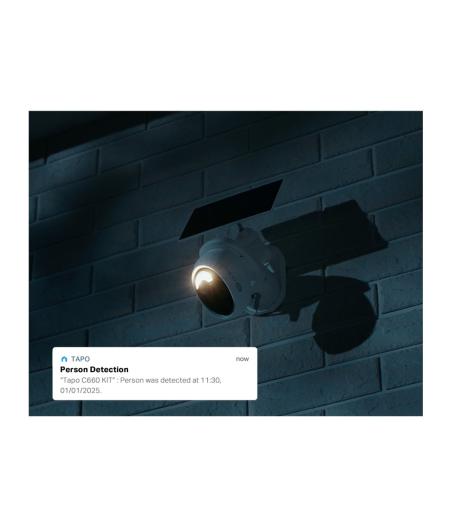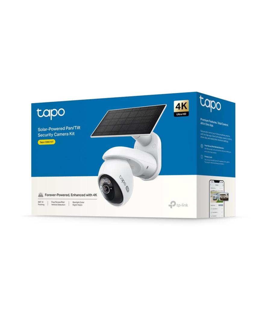 Tapo C660 KIT V1 - Solar-Powered Security Camera Kit - cam?ra de surveillance r?seau - panoramique / inclinaison - ext?rieur - r?sistant aux intemp?ries - couleur (Jour et nuit) - 8 MP - 3840 x 2160 - 4K - Focale fixe - audio - sans fil - Wi-Fi - 2.4GHz radio, radio 5 GHz - H.264 - avec Panneau solaire Tapo A201